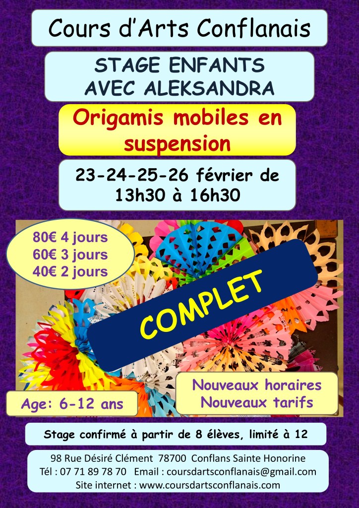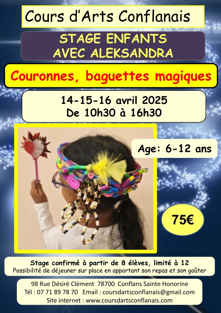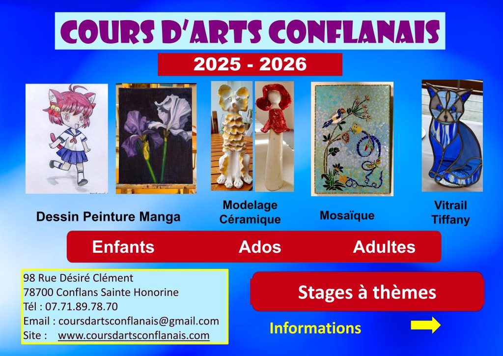 L’association « Cours d’Arts Conflanais » a été créée le 30 mai 2016 dans le cadre de la loi du 1er juillet 1901, décret du 16 août 1901. Elle a pour objet la création artistique ainsi que la diffusion et/ou la promotion de l’expression artistique sous ses différentes formes.