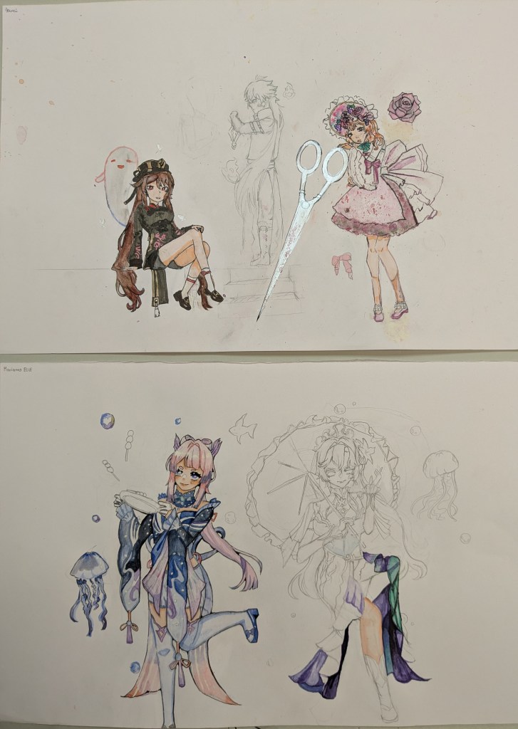 Cours d’Isabelle du samedi après-midi: aquarelles